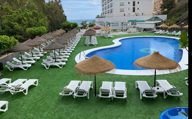 Una vista aérea de la piscina del hotel. en First Flatotel International, en Benalmádena